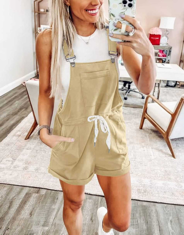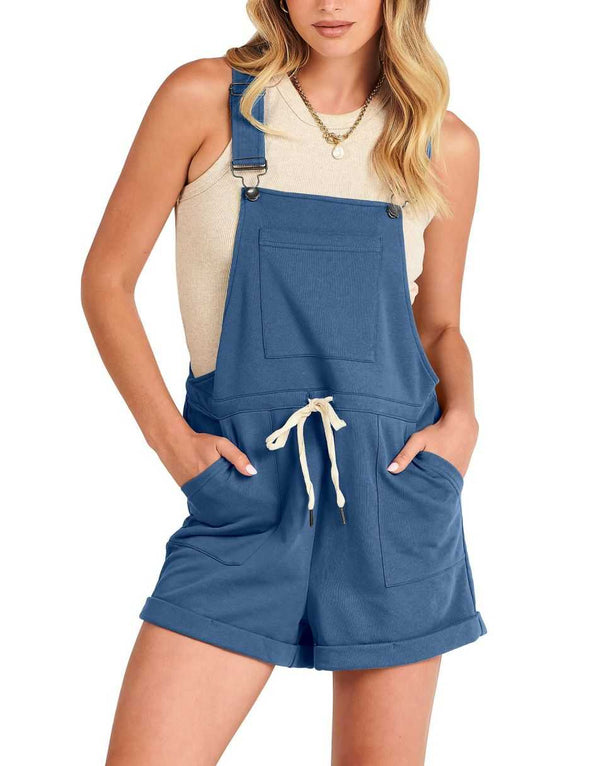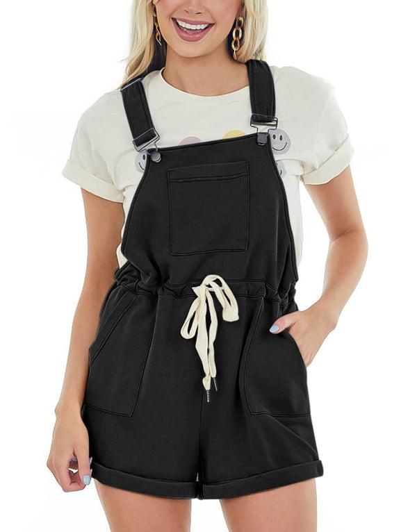 ANRABESS Casual Straps Short Bib Overalls Basic Drawstring Romper Jumpsuits
