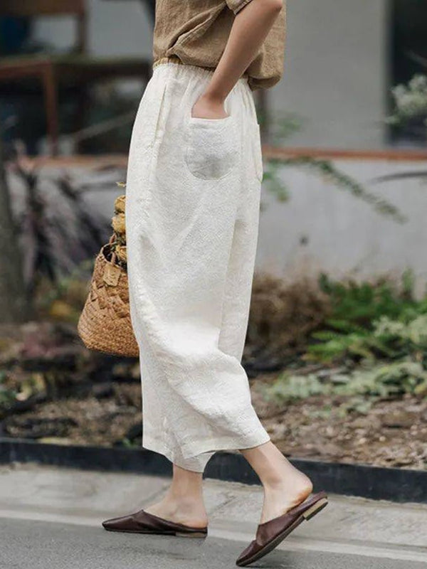 Cotton And Linen Color Contrast Stitching Elastic Waist All-match Slim Casual Pants