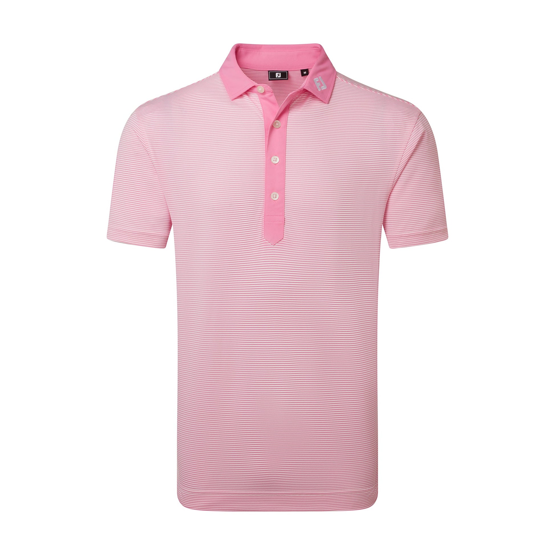 Mens Feeder Stripe Pique Golf Shirt. A simple horizontal stripe pattern with a contrasting button-down collar and deep 4-button placket for a standout, refined look" /p>