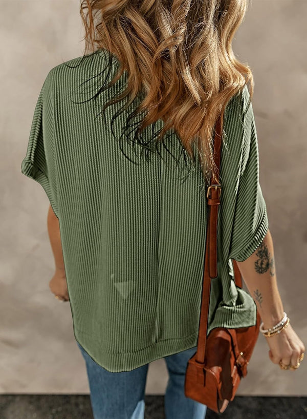 Dokotoo Women's Casual Oversized Short Sleeve Solid Color Loose Texture Knit Tunic Tops Blouses