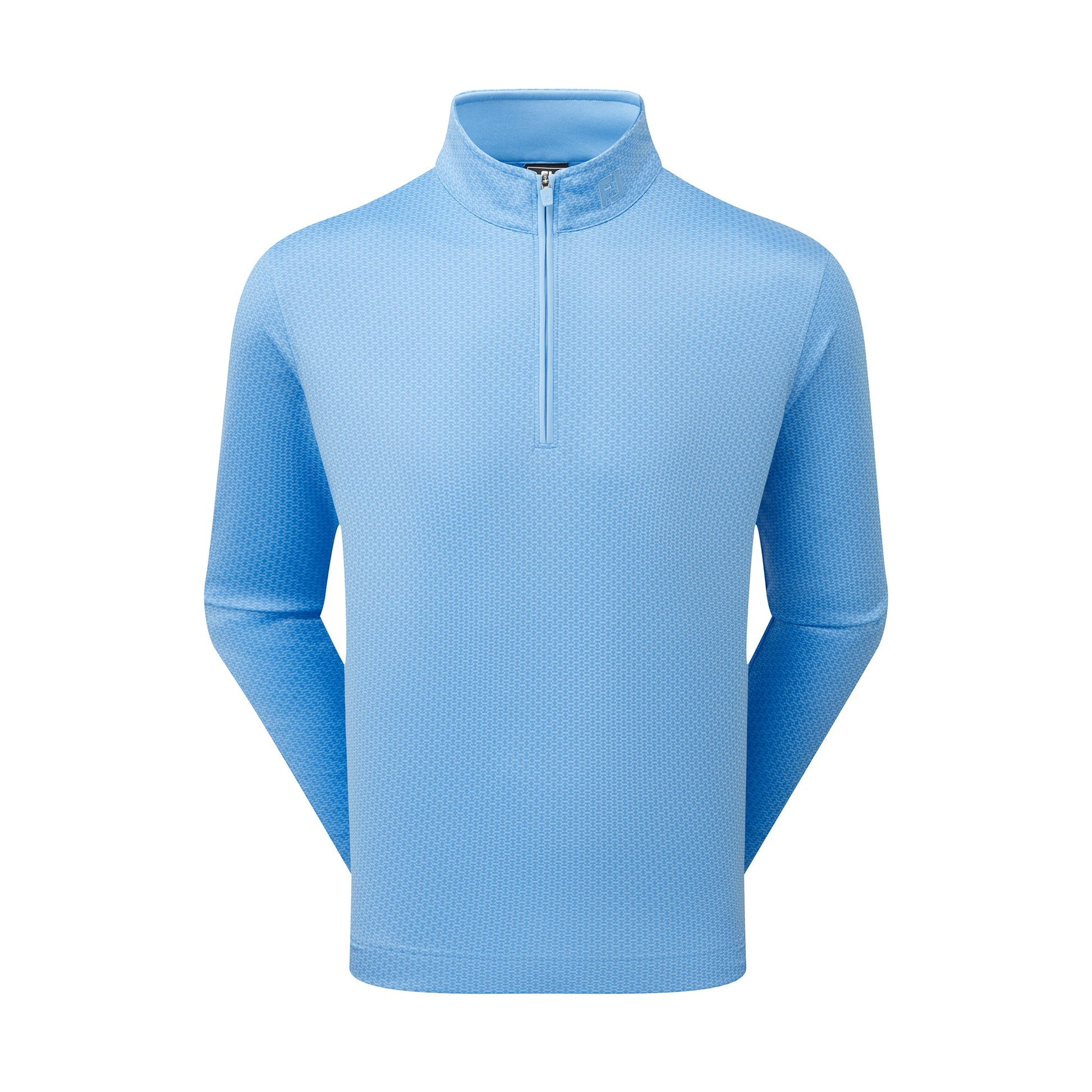 Mens Nautical Flag Tonal Chill Out Pullover. A lightweight, stretch fabric throwover in a double knit fabric with heathered body design. Constructed using an easy care technical fabric that promotes a high degree of moisture movement whilst allowing complete freedom of movement. A tonal variation of the shirt pattern, this features an all-over nautical flag print that cleverly spells out "FJ," merging maritime flair with a touch of sophisticated fun.
